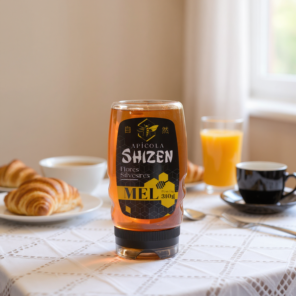 Sabor natural e praticidade no seu dia a dia! O Mel Shizen Apícola é 100% puro, proveniente de floradas silvestres, rico em nutrientes e energia natural. Possui válvula corta-pingo que evita desperdícios e facilita o uso em receitas, chás e lanches. Ideal para quem busca um adoçante saudável e sabor autêntico da natureza.